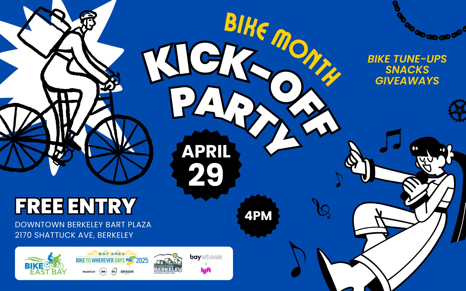 Location: Downtown Berkeley BART Plaza, 2170 Shattuck Ave, Berkeley Kick off Bike Month festivities with Bike East Bay! Join us at Downtown Berkeley BART Plaza on April 29th from 4-7 PM for an afternoon of biking celebration.What to expect:FREE Professional Bike Tune-UpsPrizes and Snacks (including GU Energy to fuel your May rides!)Awesome Giveaways including Mike's Bikes Gift CardsMusic + FunWe'll answer your Bike to […]