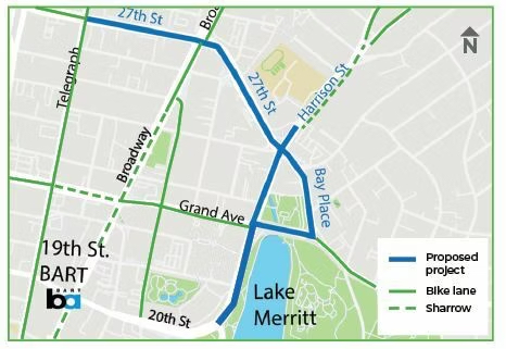 - Lake Merritt BART Transit-Oriented Development – Oak St and Fallon St protected bikeways, raised crosswalks, protected intersectison – $7.8M – Project info here