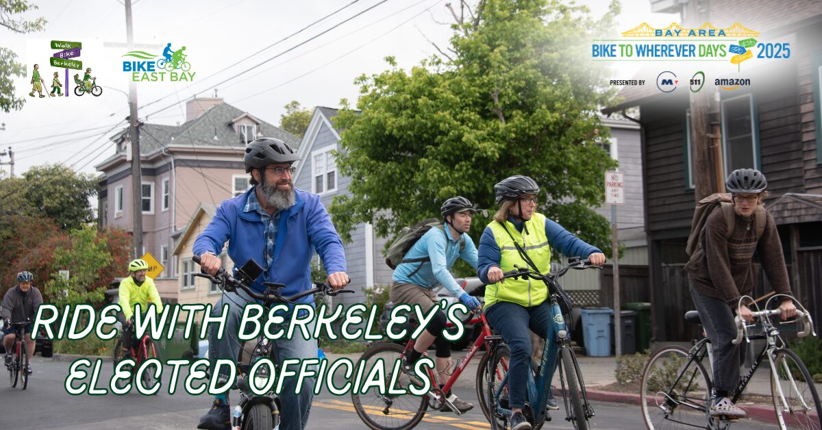 Location: West Oakland Bike Summit Ride with Bike East Bay, Walk Bike Berkeley, and Berkeley elected officials for Bike to Wherever Day on May 15, 2025! We will meet up starting 8am at the Ashby BART west side entrance, and ride out at 8:30am, arriving around 9am at Berkeley City Hall. Confirmed attendees include: Mayor Adena Ishii Councilmember Brent Blackaby […]
